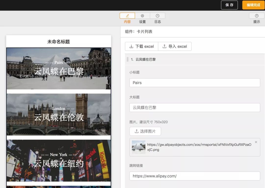 支持页面 Data 编辑, 面向运营、产品人员, 编辑自由度为无嵌套的组件.