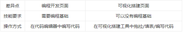 用页面可视化搭建工具来搭建页面与前端工程师在页面上搬砖, 都是搭建页面, 区别在于实现页面搭建的方式. 做个简单对比: