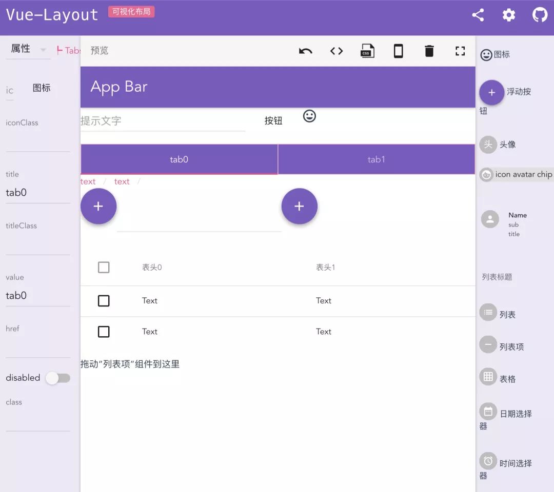 基于UI组件的Vue可视化布局、生成.vue代码的工具。