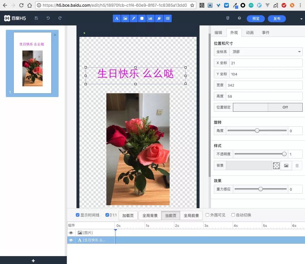 如: 小陈女票要生日了, 小陈为女票做了一个有创意的生日祝福页面: