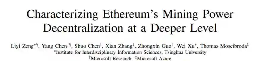 为了深入了解、分析区块链系统,微软亚洲研究院和清华大学的科研人员提出了对以太坊矿池参与者的首次大规模研究。研究员们通过数据分析了解矿池参与者的算力分布和挖矿行为,进一步刻画以太坊算力去中心化程度,并将研究的分析见解发表了论文“Characterizing Ethereum’s Mining Power Decentralization at a Deeper Level”。该工作已被全球计算机网络领域的重要会议 INFOCOM 2021 接收。