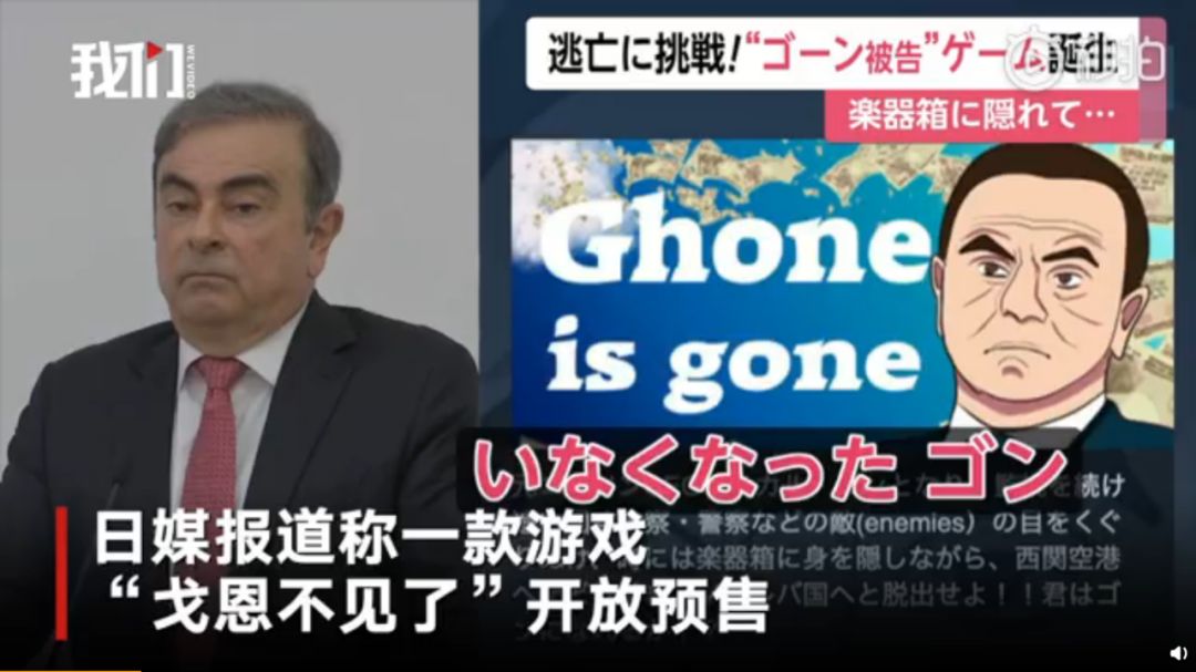1月10日,日媒报道称一款名叫“戈恩不见了”的游戏开放预售。主人公名为洛斯卡·戈恩,原型是日产汽车前CEO卡洛斯·戈恩。角色可以扔“现金”袭击路上的敌人,还可以藏身黑色箱子内进行防御。角色的目的地是机场,在那里他将搭飞机前往黎巴嫩。(新京报)