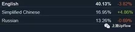 2017年6月steam报告中显示的不同语种用户占比