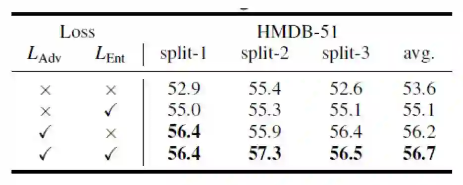 。在这个过程中,作者们用到了三种损失函数。首先在Mini-Kinetics-200数据集[1]上,通过一个标准的交叉熵损失函数