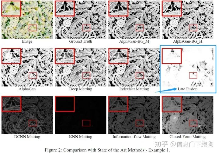 而恰好在LFM论文的Figure 6里面,也用到了与上面Figure 2一样的前景进行抠图。下图Figure 6 红色框框住的部分就是用相同前景合并了不同背景后LFM报告的结果。