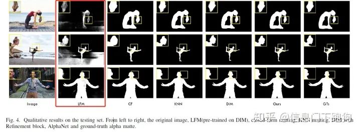 首先要提到的是在LFM的实验中,作者采用了上文中提到的2017 CVPR Oral Deep Image Matting提供的Adobe Deep Image Matting Dataset数据集 进行训练并且基于这个数据集的测试集进行测试,来佐证LFM能够在任意RGB图像上都能够进行抠图