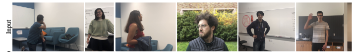 Note that our network works well for various poses and scales of the human in the foreground. For instance, the woman viewed from the back (second row in Fig. 5) is difficult for the deep automatic portrait matting.
