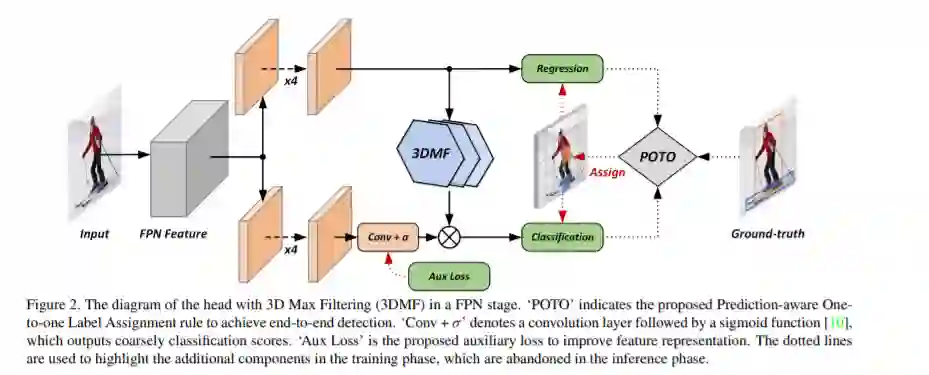 本文首次在全卷积目标检测器上去除了NMS(非极大值抑制)后处理,做到了端到端训练。我们分析了主流一阶段目标检测方法,并发现传统的一对多标签分配策略是这些方法依赖NMS的关键,并由此提出了预测感知的一对一标签分配策略。此外,为了提升一对一标签分配的性能,我们提出了增强特征表征能力的模块,和加速模型收敛的辅助损失函数。我们的方法在无NMS的情况下达到了与主流一阶段目标检测方法相当的性能。在密集场景上,我们的方法的召回率超过了依赖NMS的目标检测方法的理论上限。