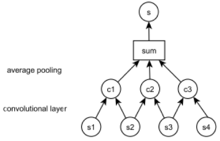 这篇文章出自 University of Oxford 和 DeepMind,提出基于 unigram 和 bigram 的语义匹配模型,其中,unigram 模型通过累加句中所有词(去掉停用词)的 word vector,然后求均值得到句子的语义向量;bigram 模型则先构造句子的 word embedding 矩阵,接着用 bigram 窗口对输入矩阵做 1D 卷积,然后做 average 池化,用 n 个 bigram 卷积核对输入矩阵分别做「1D 卷积 + average 池化」后,会得到一个 n 维向量,作为文本的语义向量。文中提出的基于 CNN 的文本语义表示模型如下图所示。