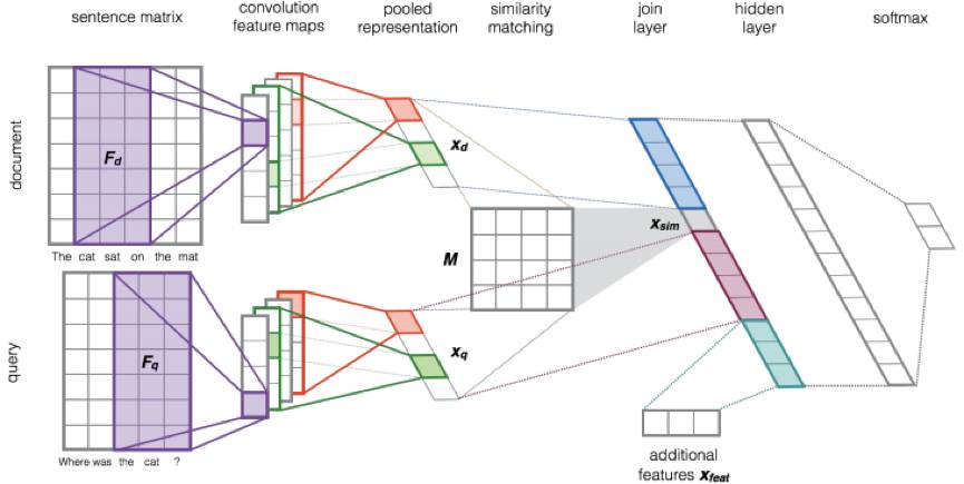 这篇文章出自华为诺亚方舟实验室,针对的问题是基于检索的短文本对话,但也可以看做是基于检索的问答系统。主要思路是,从不同角度构造 matching 特征,作为 ranking 模型的特征输入。构造的特征包括:1)Query-ResponseSimilarity;2)Query-Post Similarity;3)Query-Response Matching in Latent Space;4)Translation-based Language Model;5)Deep MatchingModel;6)Topic-Word Model;7)其它匹配特征。