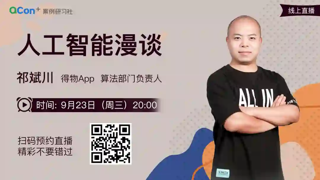 本周三 QCon+ 公开课将连线得物算法部门负责人祁斌川。祁老师目前主导得物(毒)App 流量分发中台的设计和研发,提出并实现基于 AI 的奢侈品真伪鉴定服务的落地。此前参与我国第一台完全自主研发的 3T 核磁共振设备的序列和图像重建算法研发。