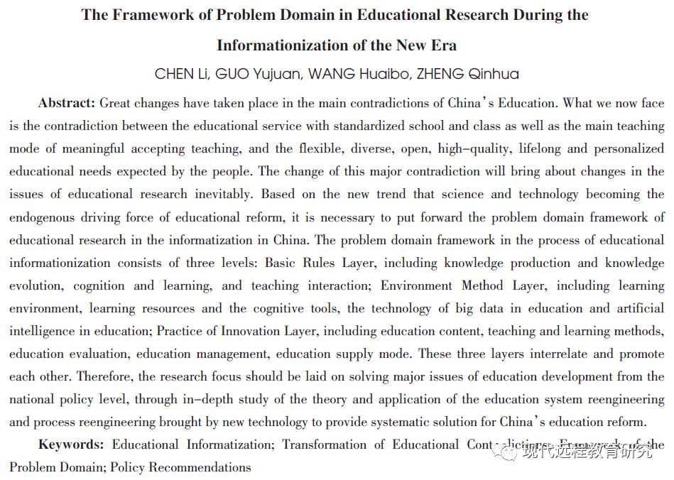 引用:陈丽,郭玉娟,王怀波,郑勤华(2018).新时代信息化进程中教育研究问题域框架[J].现代远程教育研究,(1):40-46.