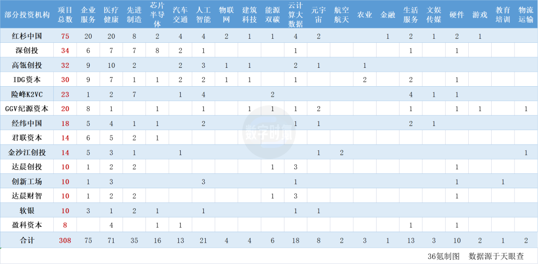 部分投资机构所投项目分布(36氪制图,数据源于天眼查)