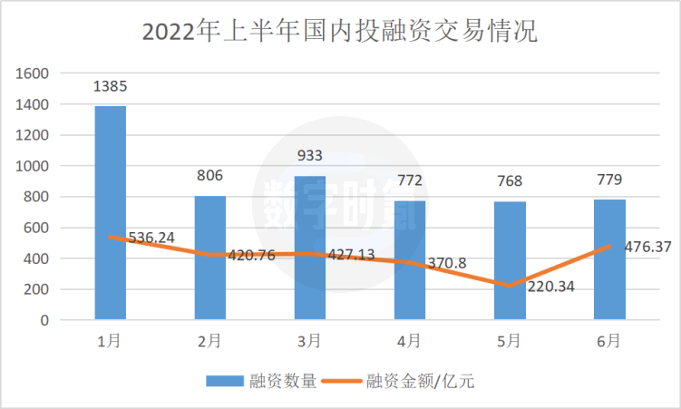 2022年上半年国内投融资交易情况(36氪制图,数据源于天眼查)
