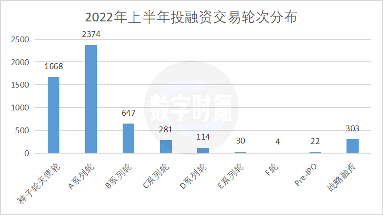 2022年上半年,国内已经完成种子轮、天使轮、Pre-A轮、A轮的融资交易为3996笔。