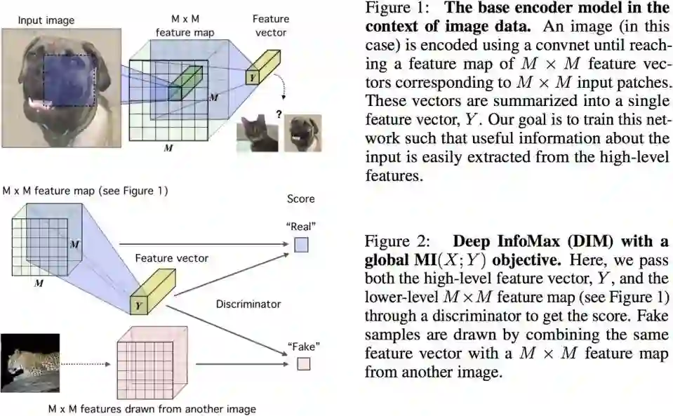 提升representation的一个关键贡献是Deep InfoMax,其思想已被会议的其他一些论文所采用。这个想法是通过最小化深层神经网络编码器的输入和输出之间的相互信息来学习更好好的表示。为此,他们使用正样本的联合分布(即(特征、表示)对)和负样的本边缘分布(即(特征,不对应于该特征的表示)对)的乘之间训练分类网络。