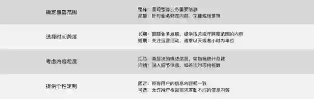 在编辑内容时,可以从内容的覆盖范围、时间跨度、粒度和个性定制等这些方面考虑,让Dashboard的内容更为符合用户需求。