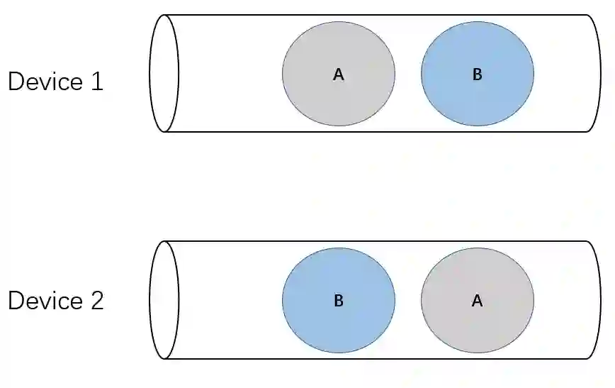 如上图所示,有 A 和 B 两个集群通信,如果在两个设备上 A 和 B 的顺序不一致,那么就会卡住,两个设备都不能继续前进,上面那个设备先发射 B kernel,它必须等待下面那个设备上对应 B kernel 发射出来才能完成,但是下面那个设备先发射了 A kernel,同样需要等待上面设备的 A kernel,但上面那个设备的 A kernel 必须等前面的 B kernel 完成才能发射,这就陷入了死锁。