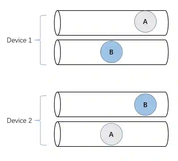 如下图所示,每个设备上多分配几个队列,把 A 和 B 调度到不同的队列上去,也能避免死锁。