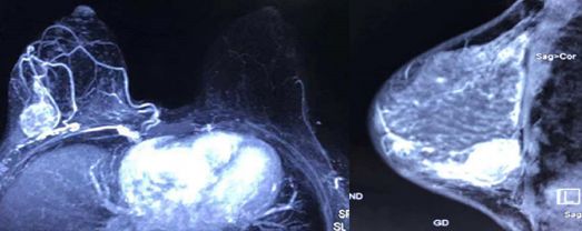 患者女性,65岁,已绝经。2018年5月主因“发现右乳腺肿物1月余”就诊于我院。既往否认慢性病、传染病、家族病史。