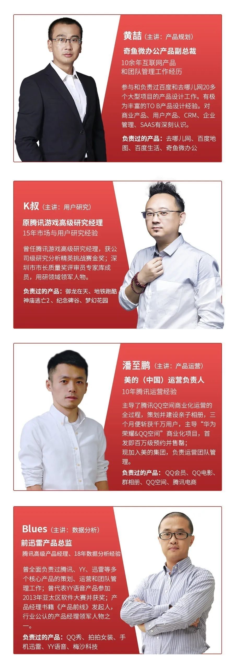 来自腾讯、百度、迅雷等大厂产品总监级导师,操盘过亿级用户产品,专业资深!