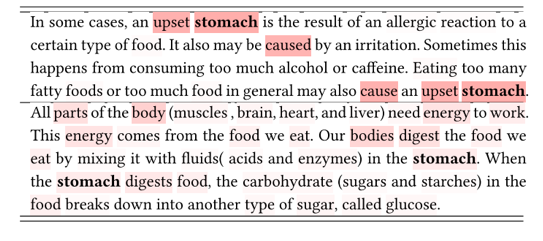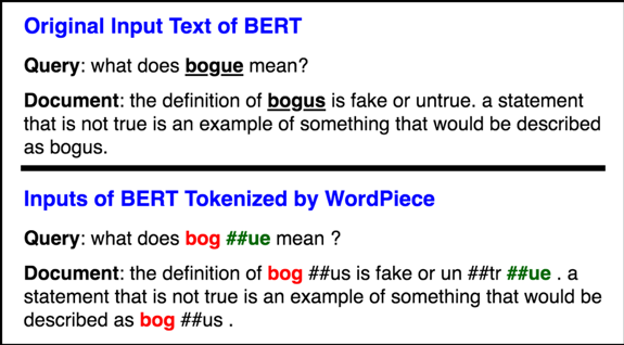 2. MARCO是标注不充分的数据集合。换句话说,许多和问题相关的文档未被标注为1,这些噪声容易造成模型过拟合。第一阶段的模型可以用来过滤训练数据中的噪声,从而可以有更好的数据监督第二阶段的精调模型。解决OOV的错误匹配问题在BERT中,为了减少词表的规模以及解决Out-of-vocabulary(OOV)的问题,使用了WordPiece方法来分词。WordPiece会把不在词表里的词,即OOV词拆分成片段,如图6所示,原始的问题中包含词“bogue”,而文档中包含词“bogus”。在WordPiece方法下,将“bogue”切分成”bog”和“##ue”,并且将“bogus”切分成”bog”和“##us”。我们发现,“bogus”和“bogue”是不相关的两个词,但是由于WordPiece切分出了匹配的片段“bog”,导致两者的相关性计算分数比较高。图6 BERT WordPiece处理前/后的文本为了解决这个问题,我们提出了一种是对原始词(WordPiece切词之前)做精准匹配的特征。所谓“精确匹配”,指的是某个词在文档和问题中同时出现。精准匹配是信息检索和机器阅读理解中非常重要的一个技术。根据以往的研究,很多阅读理解模型加入该特征之后都可以有一定的效果提升。具体的,在Fine-tuning阶段,我们对于每个词构造了一个精准匹配特征,该特征表示该单词是否出现在问题以及文档中。在编码阶段之前,我们就将这个特征映射到一个向量,和原本的Embedding进行组合: 图7 词还原机制的工作原理除此之外,我们还提出了一种词还原机制如图7所示,词还原机制能够将WordPiece切分的Subtoken的表示合并,从而能更好地解决OOV错误匹配的问题。具体来说,我们使用Average Pooling对Subtoken的表示合并作为隐层的输入。除此之外,如上图7所示,我们使用了MASK处理Subtoken对应的非首位的隐层位置。值得注意的是,词还原机制也能很好地避免模型的过拟合问题。这是因为MARCO的集合标注是比较稀疏的,换句话说,有很多正例未被标注为1,因此容易导致模型过拟合这些负样本。词还原机制一定程度上起到了Dropout的作用。总结与展望以上内容就对我们提出的DR-BERT模型进行了详细的介绍。我们提出的DR-BERT模型主要采用了任务自适应预训练以及两阶段模型精调训练。除此之外,还提出了词还原机制和精确匹配特征提高OOV词的匹配效果。通过在大规模数据集MS MARCO的实验,充分验证了该模型的优越性,希望这些能对大家有所帮助或者启发。参考文献[1] Payal Bajaj, Daniel Campos, et al. 2016. "MS MARCO: A Human Generated MAchine Reading COmprehension Dataset" NIPS.[2] Christopher J. C. Burges, Robert Ragno, et al. 2006. "Learning to Rank with Nonsmooth Cost Functions" NIPS.[3] Jun Xu and Hang Li. 2007. "AdaRank: A Boosting Algorithm for Information Retrieval". SIGIR.[4] Po-Sen Huang, Xiaodong He, et al. 2013. "Learning deep structured semantic models for web search using clickthrough data". CIKM.[5] Chenyan Xiong, Zhuyun Dai, et al. 2017. "End-to-end neural ad-hoc ranking with kernel pooling". SIGIR.[6] Zhe Cao, Tao Qin, et al. 2007. "Learning to rank: from pairwise approach to listwise approach". ICML.[7] Fen Xia, Tie-Yan Liu, et al. 2008. "Listwise Approach to Learning to Rank: Theory and Algorithm". ICML.[8] Mike Taylor, John Guiver, et al. 2008. "SoftRank: Optimising Non-Smooth Rank Metrics". In WSDM.[9] Devlin, J., Chang, M. W., Lee, K., & Toutanova, K. 2018. "Bert: Pre-training of deep bidirectional transformers for language understanding". arXiv preprint arXiv:1810.04805.[10] Rodrigo Nogueira and Kyunghyun Cho. 2019. "Passage Re-ranking with BERT". arXiv preprint arXiv:1901.04085 (2019).[11] Rodrigo Nogueira, Wei Yang, Kyunghyun Cho, and Jimmy Lin. 2019. "Multi-stage document ranking with BERT". arXiv preprint arXiv:1910.14424 (2019).[12] Zhuyun Dai and Jamie Callan. 2019. "Context-aware sentence/passage term importance estimation for first stage retrieval". arXiv preprint arXiv:1910.10687 (2019)[13] Hiroshi Mamitsuka. 2017. "Learning to Rank: Applications to Bioinformatics".