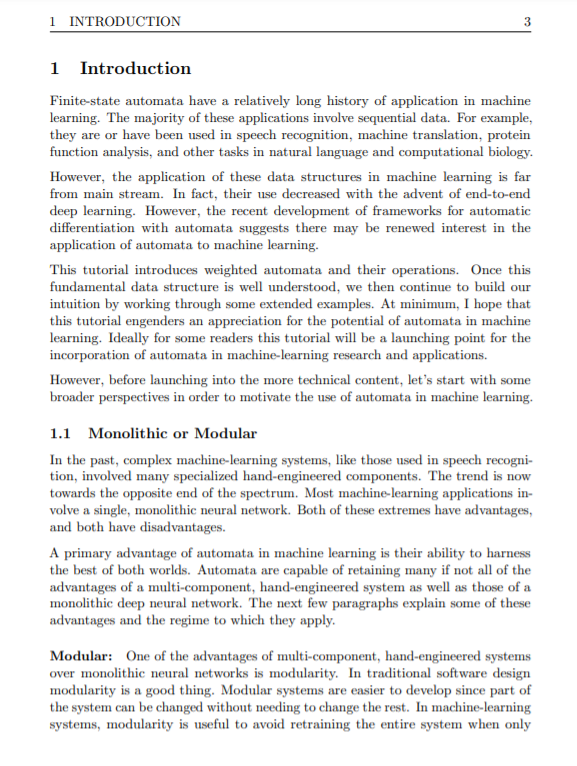 这项工作的目标是向读者介绍加权有限状态自动机及其在机器学习中的应用。我首先介绍了机器学习中自动机的使用,然后介绍了受体、换能器和它们的相关属性。然后详细描述了加权自动机的许多核心运算。在此基础上,通过解释自动分化及其在加权自动机中的应用,进一步向研究前沿迈进。最后一节介绍几个扩展示例,以加深对加权自动机及其操作的熟悉,以及它们在机器学习中的使用。