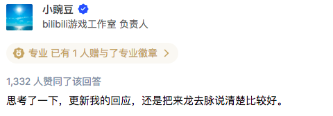 对此,B站方面做出反应,认证为B站游戏工作室负责人「小豌豆」的账号回应称,「上述说法不实」。