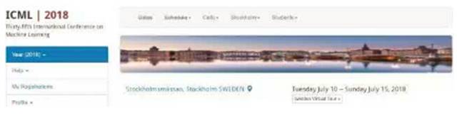第 35 届国际机器学习会议 ICML 2018 将于 2018 年 7 月 10 日-15 日在瑞典斯德哥尔摩举行,这次会议是与 IJCAI,AAMAS 和 ICCBR 共同举行的联合会议。