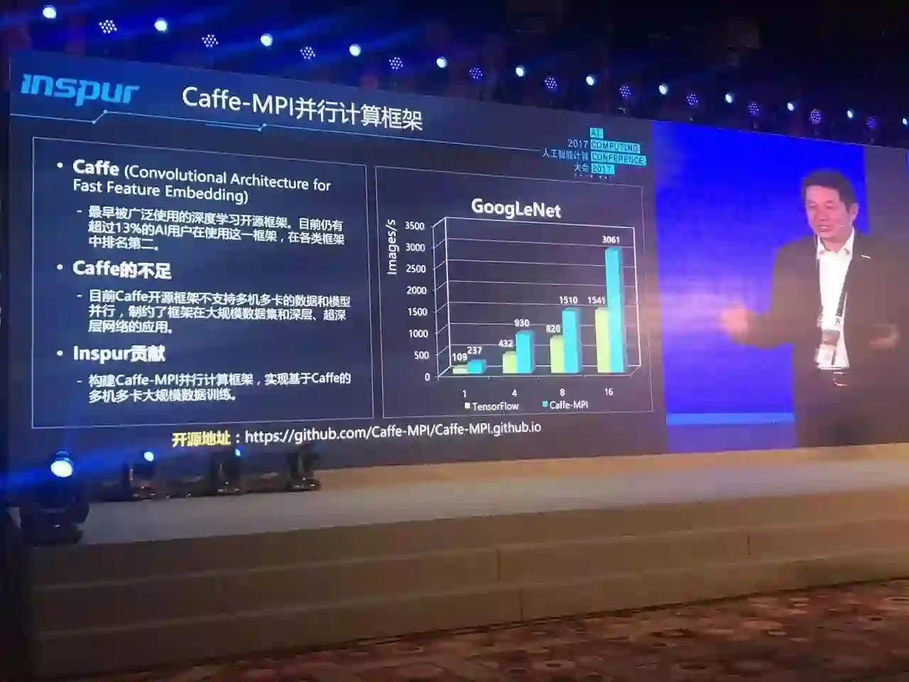 这实际上就是把在高性能计算领域里的应用模式和应用方法移植到了AI的平台上,通过原先已经有的在大规模计算平台上的经验,提高AI应用或者说提高神经网络的训练效率。Caffe-MPI目前是一个开源项目,由浪潮贡献,可以自由下载。