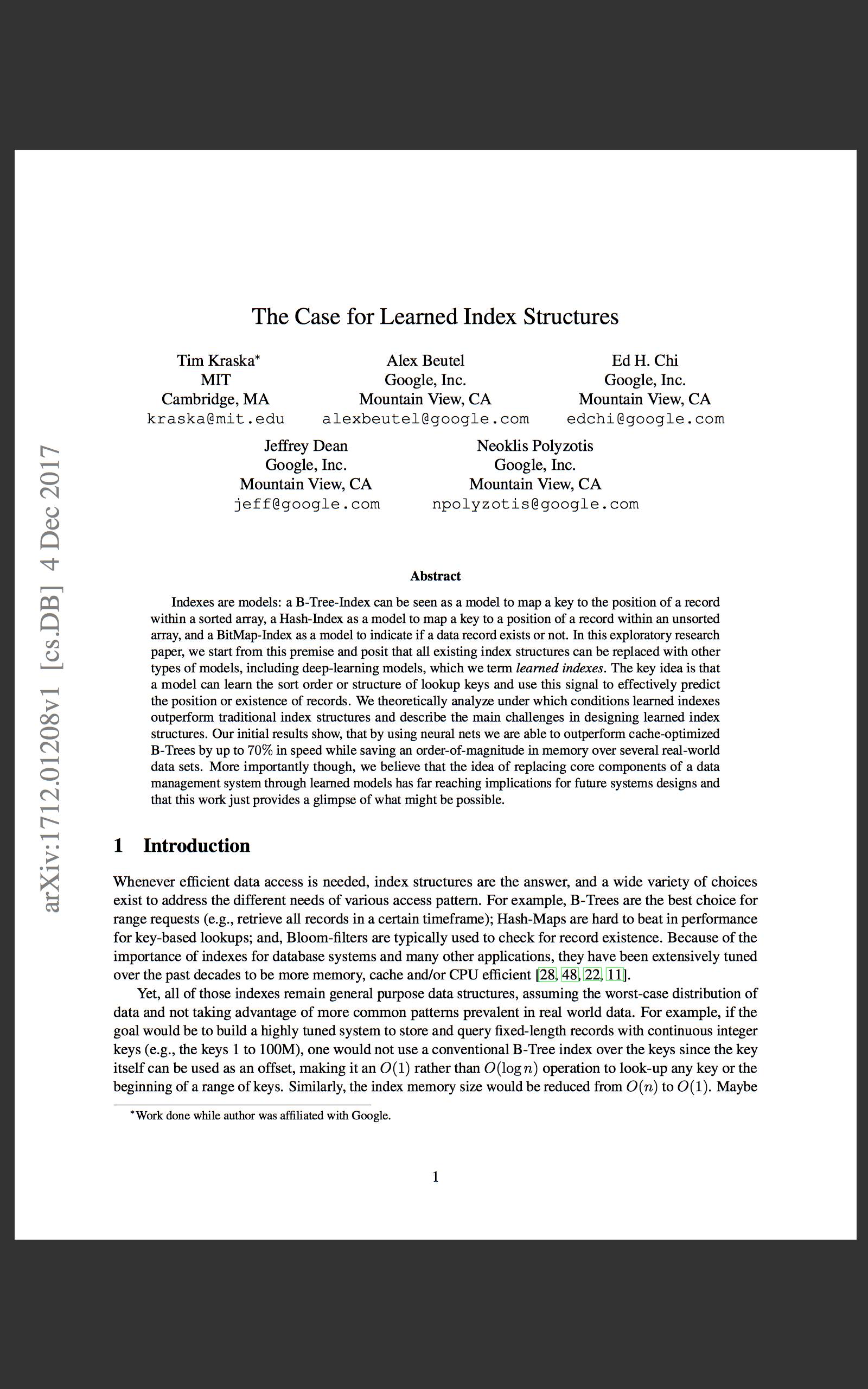 谷歌Jeff Dean团队发文,探讨「学习模型」如何替代传统索引结构