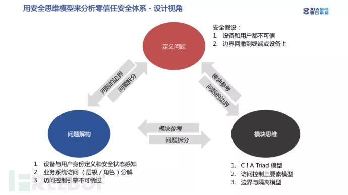 下面就要用安全思维模型来分析零信任安全体系,只从纯技术角度去分析零信任安全体系,不谈零信任安全体系的部署和实施,也不谈实现零信任安全防护体系的产品节奏。也即抛开运营视角和产品视角,只从安全设计的视角去看零信任安全体系。