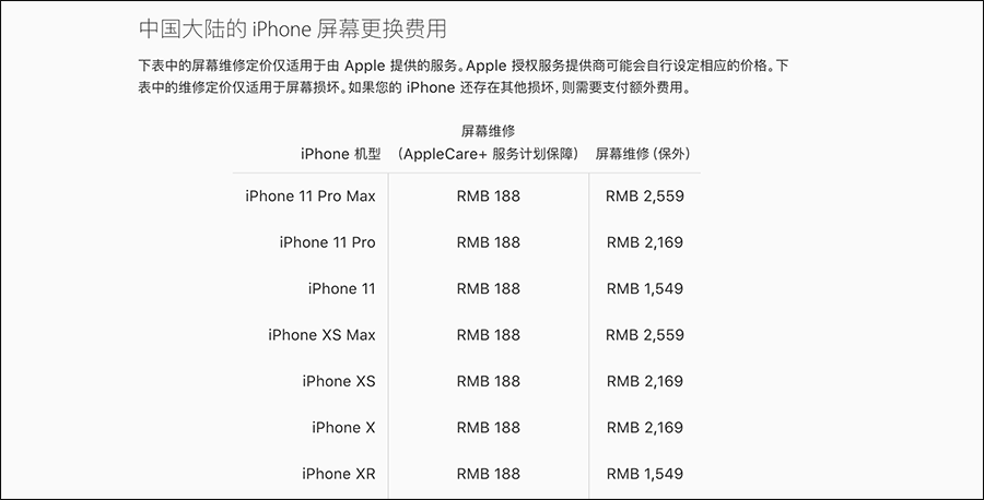 可当我上苹果官网看了一眼 iPhone 更换屏幕的价格之后,果断放弃了。买了 AppleCare+ 服务计划保障的机器,更换一块原装屏幕只需 188 元。而在保修期外的 iPhone XS,更换一块原装屏幕则要 2169 元,都要赶上三分之一手机的价格了。所以说,AppleCare+ 确实是个好东西。