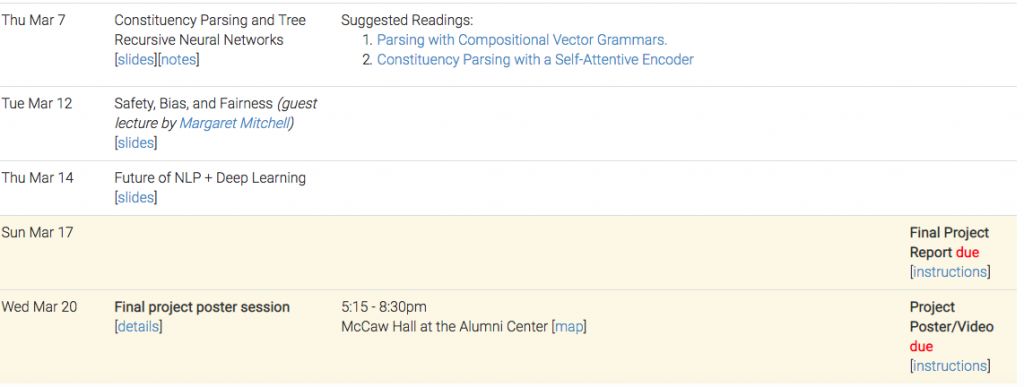 http://web.stanford.edu/class/cs224n/index.html#schedule