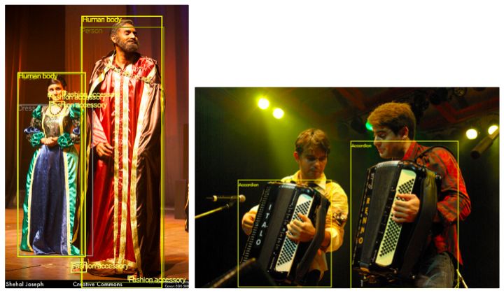 尺度变化大:大部分物体框只占整个图片的0.1以下,而有些框选却占了整个图片区域。如图所示,Open Image V4集合存在更多的小物体,参赛者也会在检测数据中遇到更大的挑战。