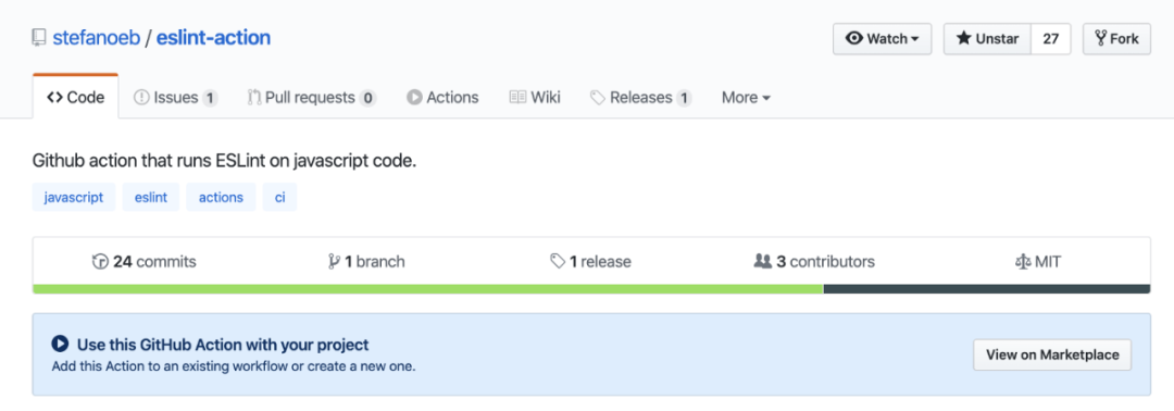 该操作在指定的 JavaScript 文件上执行 ESLint 代码检查工具,而不需要任何前期的操作 / 构建步骤或 Docker。