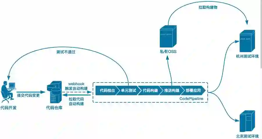 刚才提到我们做了一个产品叫 CodePipeline ,这也是今天想跟大家核心讨论的一部分,大家都讨论 Jenkins ,为什么我们要讨论 CodePipeline ?这个也是迫不得已的一个选择,在很久以前我们自己内部也是用 Jenkins ,我们也有自己很多的实践。