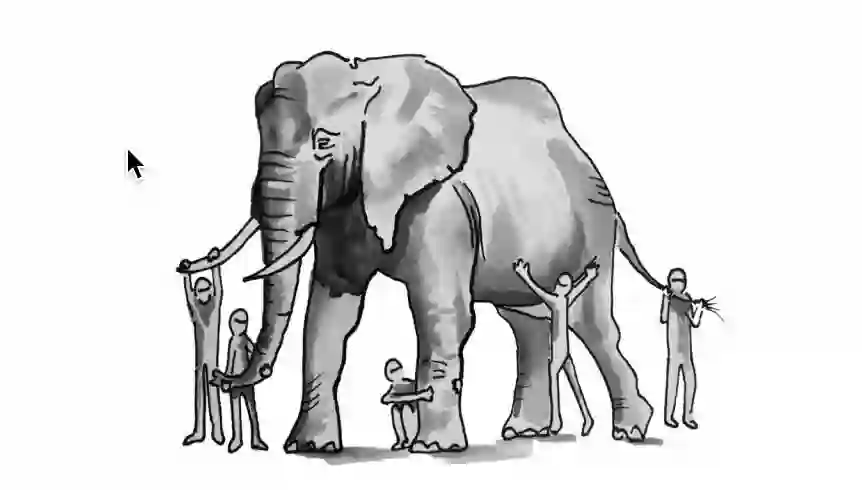 比如这张图,有人摸到大象的尾巴,像一个绳子;有的人摸到肚子,像一堵墙。每个人从不同的会议上或者书籍上获取 DevOps 观念的时候没有统一的观念,最终实现 DevOps 的方案也不同。实现的好的话就像顾宇老师或者华强大哥那种,有明确的方案产生。实现得不好就会变成这样,一个很畸形的大象。