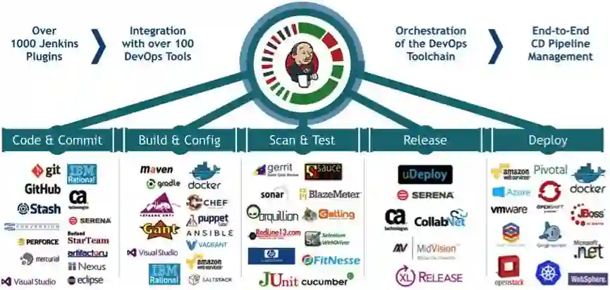 Jenkins 是一个通用领域的集成,这是一个标准的持续集成的步骤。