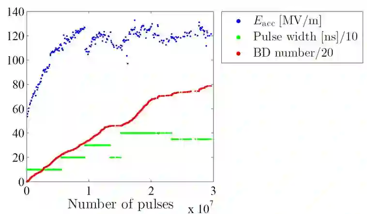 1. 国内首次研制了X波段高梯度行波加速管,开展了高梯度实验研究,实现了110 MV/m加速梯度下的稳定运行,并对实验中的射频击穿现象进行了系统性研究,发现了不同类型射频击穿现象的时间分布规律。