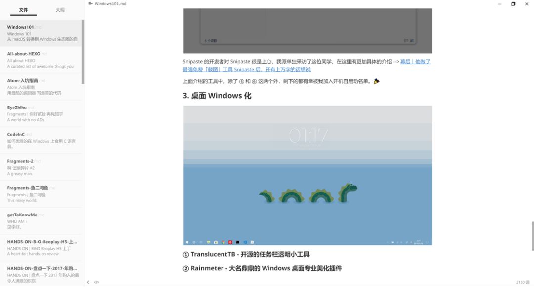 Typora 不必多说了,基本上是 Windows 上写 Markdown 的必备利器了。我的这篇文章就是在 Windows 的 Typora 上面编写完成的。