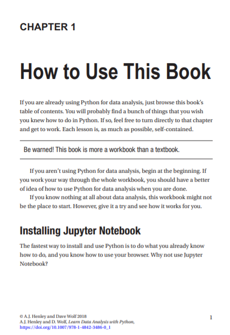 每一节课都尽可能是独立的,允许您根据需要插入和退出示例。如果您已经在使用Python进行数据分析,那么您会发现您希望知道如何使用Python来完成许多事情。然后,您可以将这些技术直接应用到您自己的项目中。