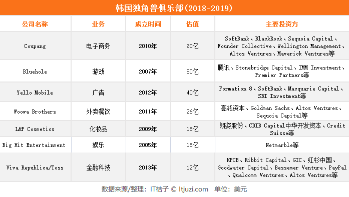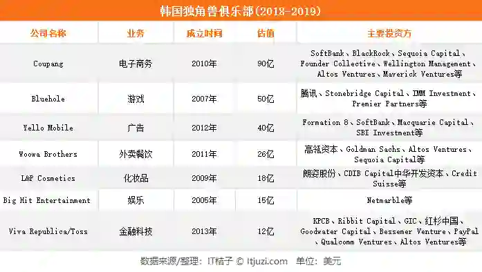 IT 桔子日前结合 itjuzi.com 数据库以及 CrunchBase、CB Insights 的独角兽榜单,对韩国独角兽公司进行了梳理和盘点,一起来看看。
