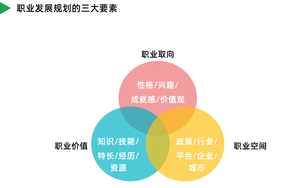 谢浩然老师将从职业取向、职业价值、职业空间三大职业规划要素出发: