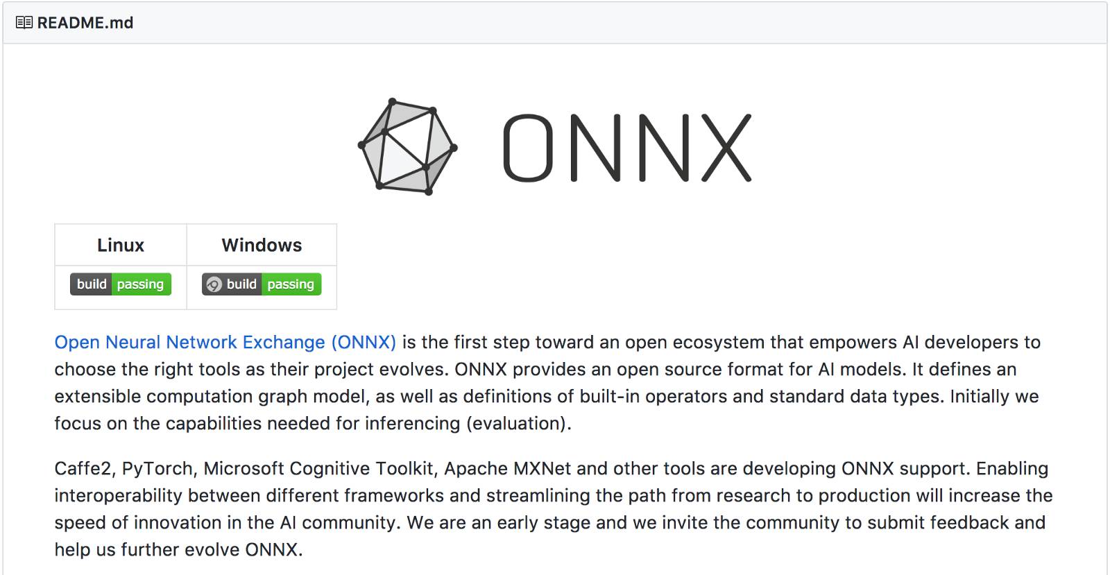 ONNX由微软、亚马逊和Facebook等公司共同发起,宣布支持ONNX的公司还有AMD、ARM、华为、 IBM、英特尔、Qualcomm等。谷歌不在这个阵营中并不令人惊讶。ONNX从一开始就支持Caffe2,Microsoft Cognitive Toolkit,MXNet和PyTorch,但与其他开源项目一样,社区也已经为TensorFlow添加了一个转换器。