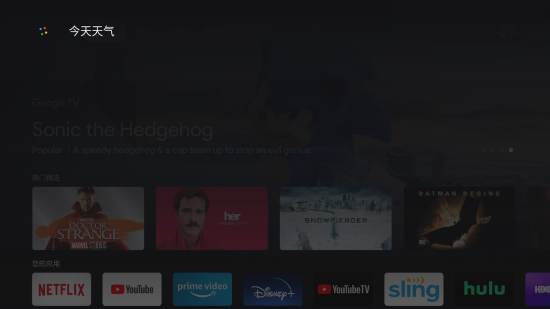 除了推荐很有 Google 特色外,其它地方和 Android TV 差异不大,应用都是和 Android TV 版本的一样。系统设置里也可以看到就是 Android TV 10,不过版本很新。