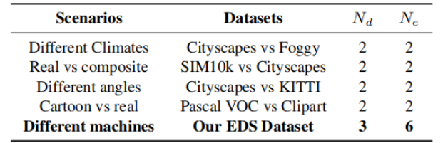 可以看出,EDS 在域的数量和支持实验的组数上都要高于传统的跨域检测数据集。并且,迄今为止目前还没有专业的高质量的数据集针对由机器硬件参数引起的难以察觉的域间偏移问题研究,因此,本数据集的提出是非常及时且必要的。