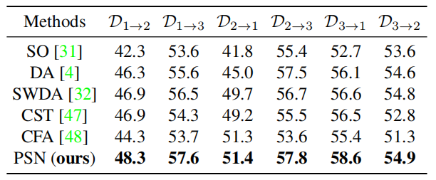 实验分别在内生偏移的场景(EDS 数据集)、外生偏移的场景(Cityscapes 数据集)和模拟噪声场景(在 Cityscapes 数据集上添加对抗噪声)和分离实验上进行了充分的验证。比较的模型包括已经开源的 CFA(CVPR 2020),CST(ECCV 2020),SWDA(CVPR 2019)等 SOTA 方法。