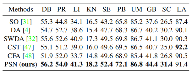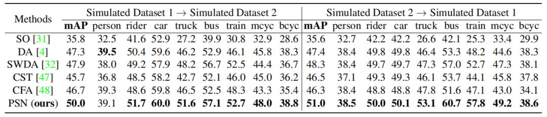 表 5 Cityscapes 数据集→模拟数据集 1 的实验结果