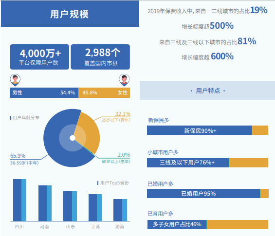 从报告可以看出,2019年一线以及二线城市客户涨幅500%,水滴也在进军高端用户群像。但是一线二线城市在水滴平台上的购买率还未有公开数据。